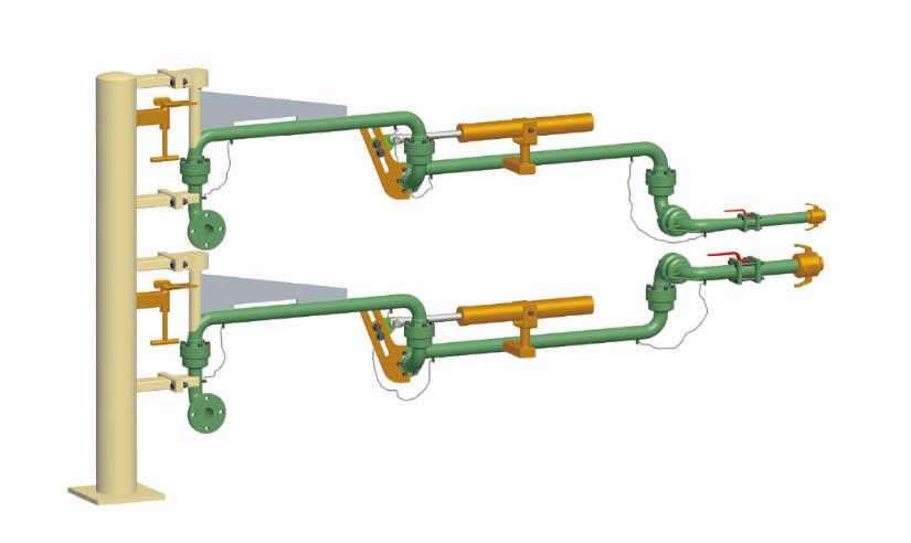 - 外臂:可在水平面和垂直面的范圍內轉動,主要用于裝卸臂同槽車、槽船調整對接工作位置的部件